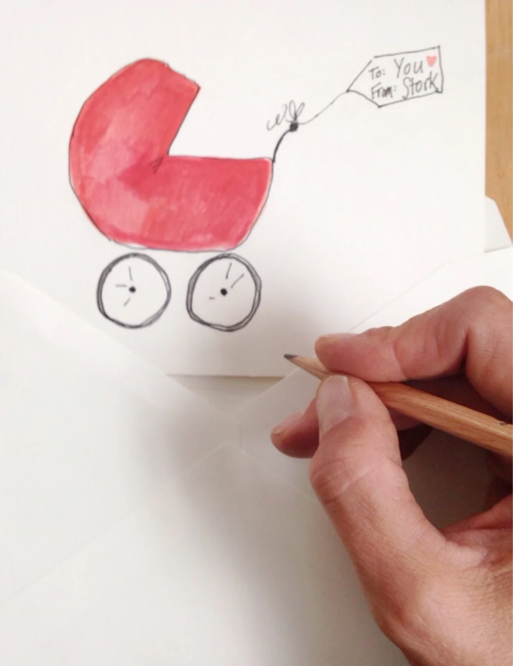 Original watercolor and ink painting. A special way to send best wishes for a New Baby, Baby Announcement, Congratulations, or say I Love You on Mother's Day or Valentine's Day.