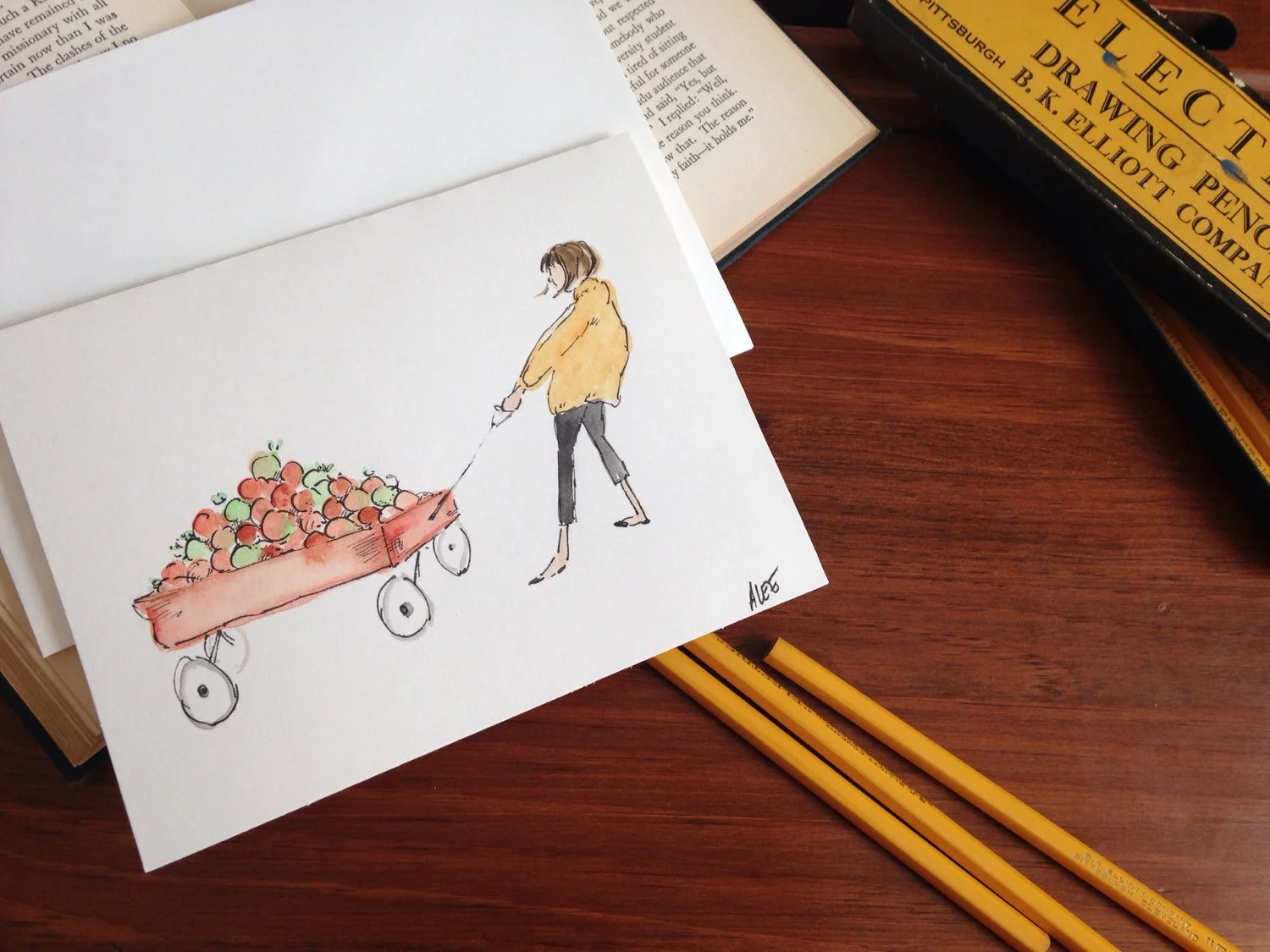 Hand painted original watercolor greeting card w/ envelope, 5 x 7" blank, Teacher, Back to School, Thank You, Friendship, Thinking of You