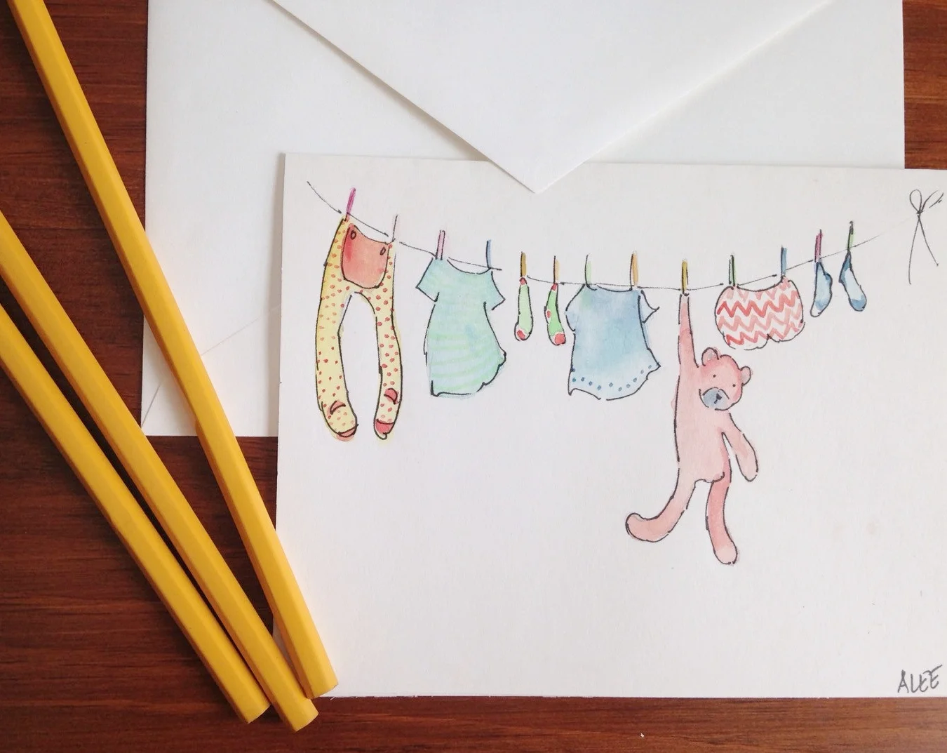 Hand painted original watercolor greeting card w/ envelope, 5x7 blank, Mother's Day, New Baby, Baby Shower, Announcement, Birthday