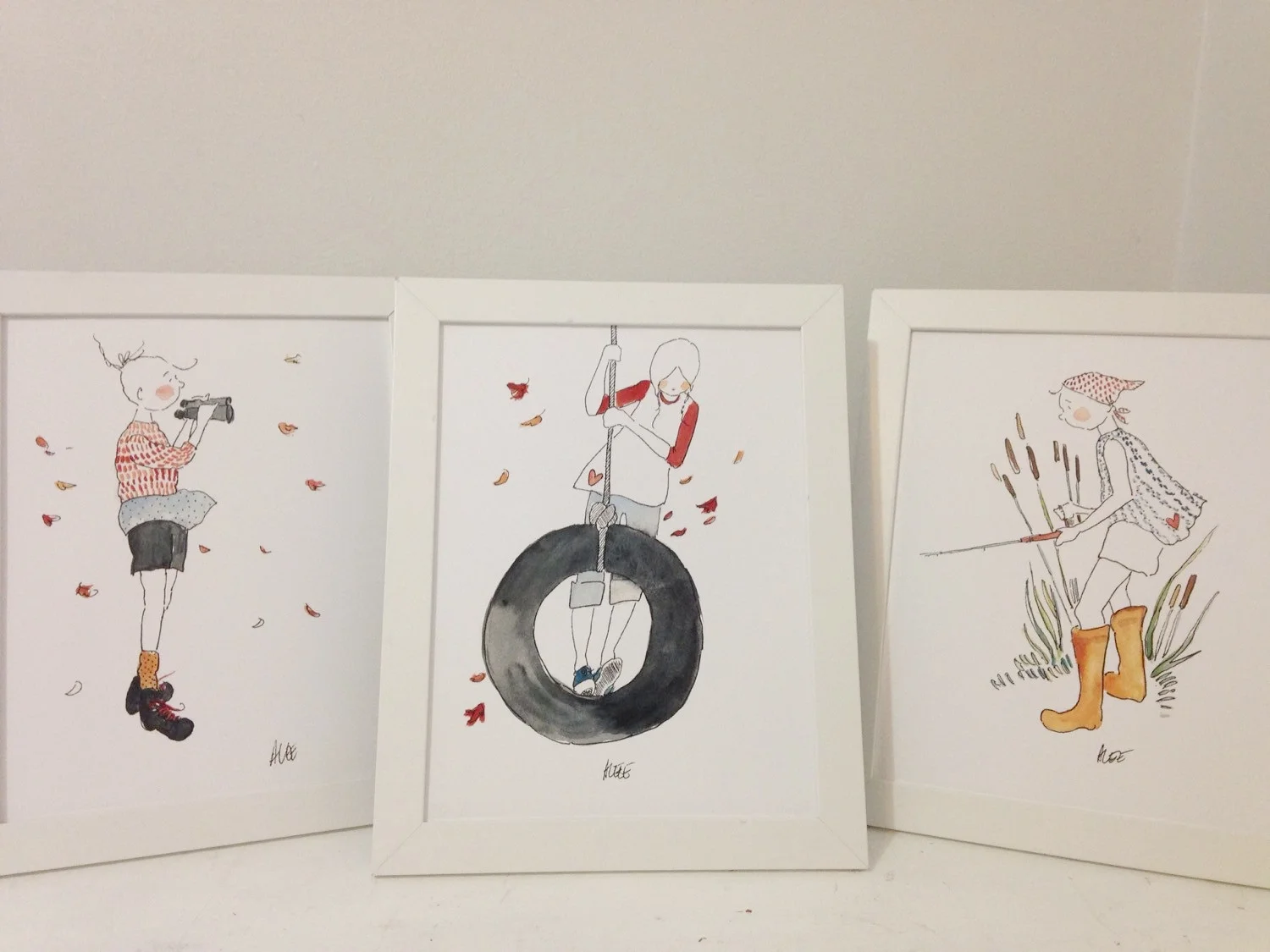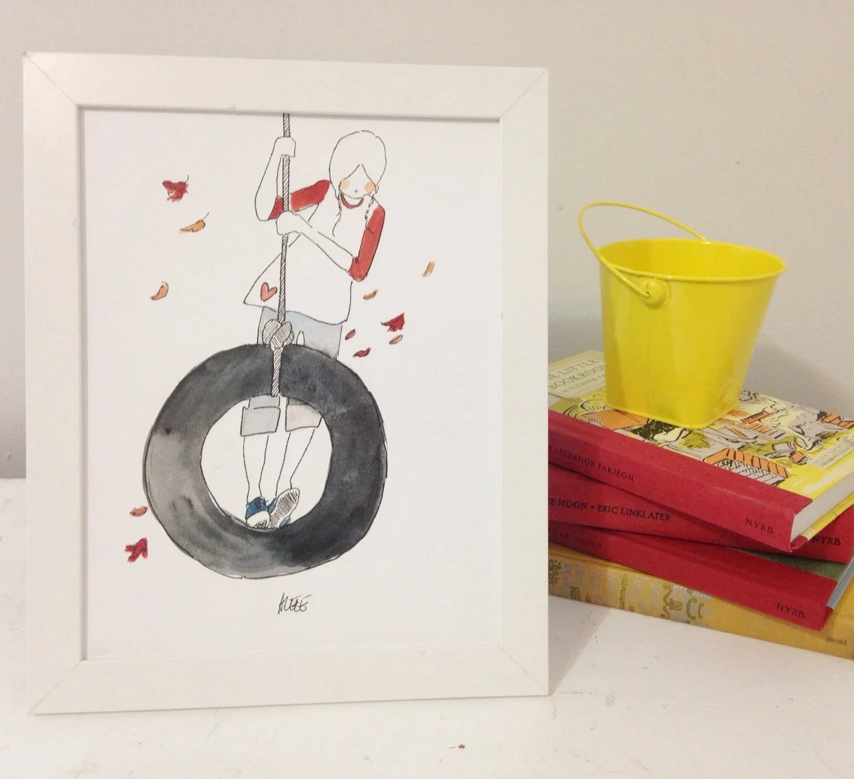 Signed digital print of original watercolor painting, 8.5x11" unframed print, Girl & Swing.